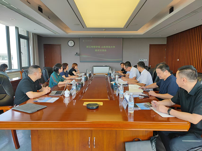 9月8日,浙江传媒学院党委委员、副院长李文冰一行来校调研交流。山东师范大学党委常委、副校长蔡阳健在长清湖校区文昌楼613会议室会见来宾并进行交流座谈。